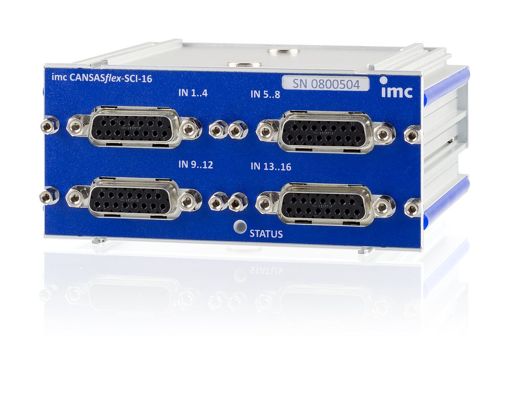 Das CAN-Bus Messmodul imc CANSASflex-SC16 ist ein 16 kanaliger Messverstärker, der physikalische Messgrößen analog erfasst, digitalisiert und über CANBus ausgibt. Die gemultiplexten Differenzeingänge