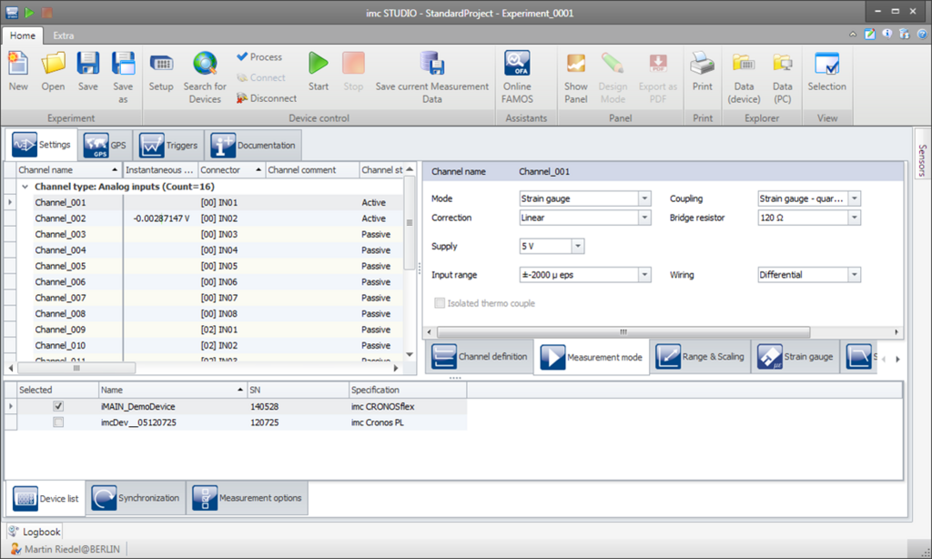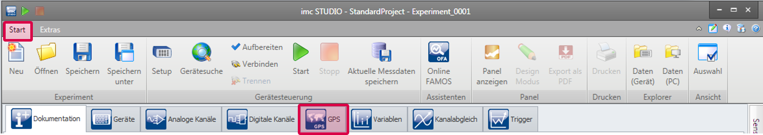 Bei der neue Bedienoberfläche von imc STUDIO passen sich die Menüs automatisch an - je nach eingesetzter Messhardware.