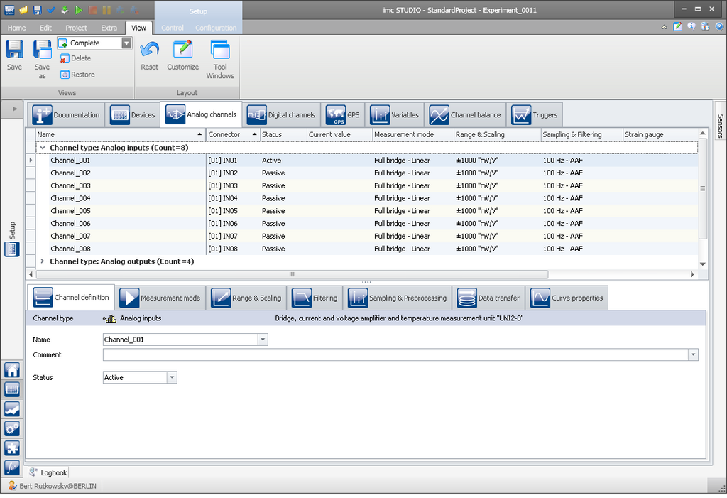 imc STUDIO 5.0 bietet einen Konfigurations-Assistenten zur Integration des Kistler Roadyn Radkraftsensors.